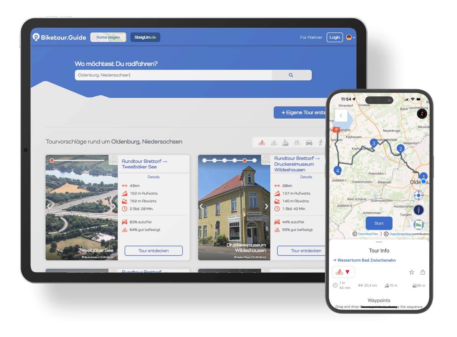 Lässt Du Dich von unseren POIs inspirieren und dorthin führen? Such Dir ein Ziel in Deiner Nähe aus, das kann ein Badesee, ein Schloss oder vielleicht ein Biergarten sein, klicke auf „Losfahren“ und der Biketour.Guide lotst Dich von Deinem Standpunkt auf der für Dich optimalen Route dorthin. Du musst also nicht erst zum Startpunkt einer bestehenden Route aufbrechen, sondern startest genau dort, wo Du gerade bist.
